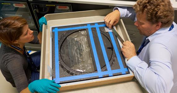 Metals conservator Tamar Davidowitz (above left) from the Rijksmuseum and conservator David Thurrowgood (above right)from QVMAG wanted more detailed information about the condition of the plate in order to best preserve it into the future.